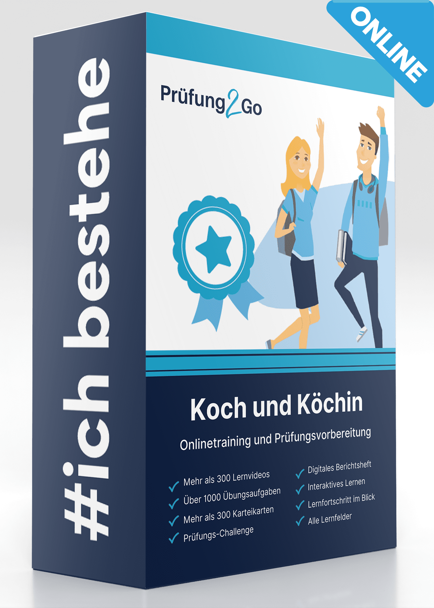 Wir haben mit dem Online-Kurs ein prall gefülltes Paket für dich geschnürt: Über 300 Lernvideos, mehr als 1000 Prüfungsaufgaben und über 300 Karteikarten warten darauf, von dir bearbeitet zu werden. Über einen Fortschrittsbalken hast du deinen Lernfortschritt immer fest im Blick.